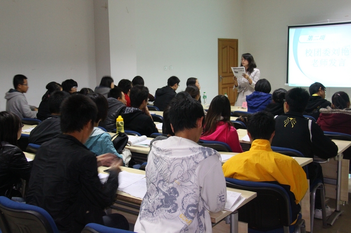会议开始,首先由主持人介绍了此次培训会的会议流程并对到场的嘉宾表示欢迎。接着,校团委刘艳艳老师发表了讲话。第一,她强调了宣传联络员的重要性,指出宣传联络员承担着各院系以及各学生组织对外宣传、保证外界及时了解学生工作动态的责任,提出了对宣传联络员的工作要求;第二,她详细介绍了此次会议的培训内容,点出了先锋家园和渭水学子网的栏目特色,并对新闻稿的写作作了具体要求,例如,新闻稿的内容应与校团委工作相关、新闻稿质量应得到保证、稿件上传格式应该规范。在重申了此次会议的重要性后,培训正式开始。