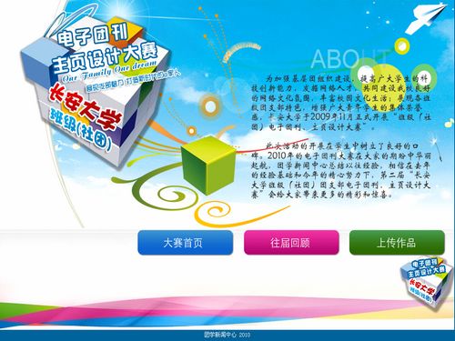 由校团委主办、团学新闻中心承办的长安大学第二届“班级(社团)团支部电子团刊、主页”设计大赛正火热进行。随着活动的开展,团学新闻中心也于昨日正式推出了,由中心自主制作、研发的大赛官方网站—长安大学班级(社团)团支部电子团刊、班级主页大赛官网http://dztk.wsxz.cn/。广大师生可从先锋家园网站右侧的“电子团刊”栏目条,或渭水学子网首页中部右侧banner广告位处点击登录,对此次电子团刊大赛作品,进行上传、浏览和投票。