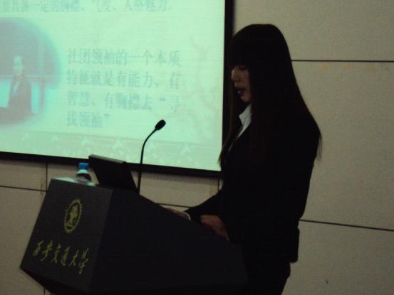 在西安交通大学团委副书记王欢老师致辞宣布第一届陕西省大学生社团发展论坛开幕之后,西安交通大学、西安建筑科技大学、西安电子科技大学、长安大学、西北大学分别派出代表做了主题报告,其中在我校博弈协会主席王思佳关于“社团发展与个人发展的的关系”的报告中,特别指出了人在社团发展中的核心地位,她说:“综观成功的社团,因素有多种。而在这些因素中,都和人有着密切的关系。在社团拥有的各项资源中,人力资源是最重要的资源,实施社团人力资源战略政策,关系到社团的可持续发展,因而如何让每个人都能在社团中找正自己的位置,发挥各自的长处就显得尤为重要了。”