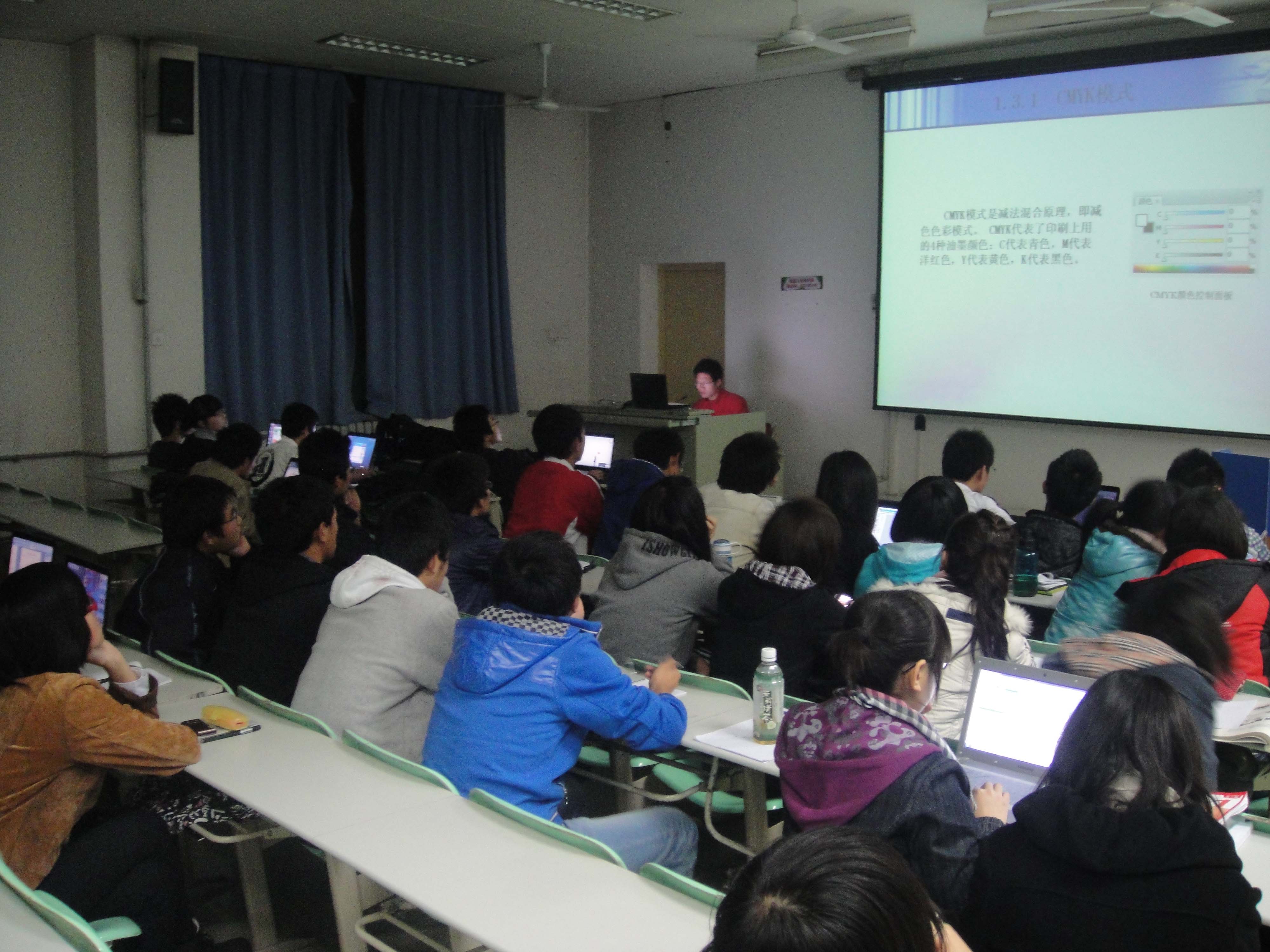 首先由新闻网络部部长肖阳欢迎大家的到来,并向大家介绍关于这次培训的主要目的——希望大家能掌握并熟练运用Photoshop和PowerPoint,为以后的工作打下良好的基础。接下来由新闻网络部副部长史景隆为大家讲幻灯片的相关内容。他首先详细介绍了PowerPoint的界面,使大家对PowerPoint有了一个初步的了解,接下来给大家播放了一件优秀的PPT作品,用PPT做出的精美动画深深地吸引了参加培训人员的目光,充分调动起了与会人员的积极性。然后史景隆逐步详解了这件作品,原本看似复杂的幻灯片经过讲解变得清晰,他向大家强调简单动画的叠加会得到意想不到的效果,以此告知大家在做的时候,要在充分发挥想象力的基础上绝对耐心。在大家热烈的掌声中新闻网络部副部长贾琛上台给大家讲解Photoshop的相关内容,他首先对图像的种类向大家介绍,并说明了不同种类的图片的用途,接下来他通过演示对软件的功能介绍。贾琛先向大家展示了一张用各种水果拼成的人脸的图像,这张新颖的图片令大家好奇究竟是怎么做出来的,顺着大家的好奇他用各种水果一步一步演示了制作过程,整个讲解过程在融洽、欢快的氛围中顺利结束。