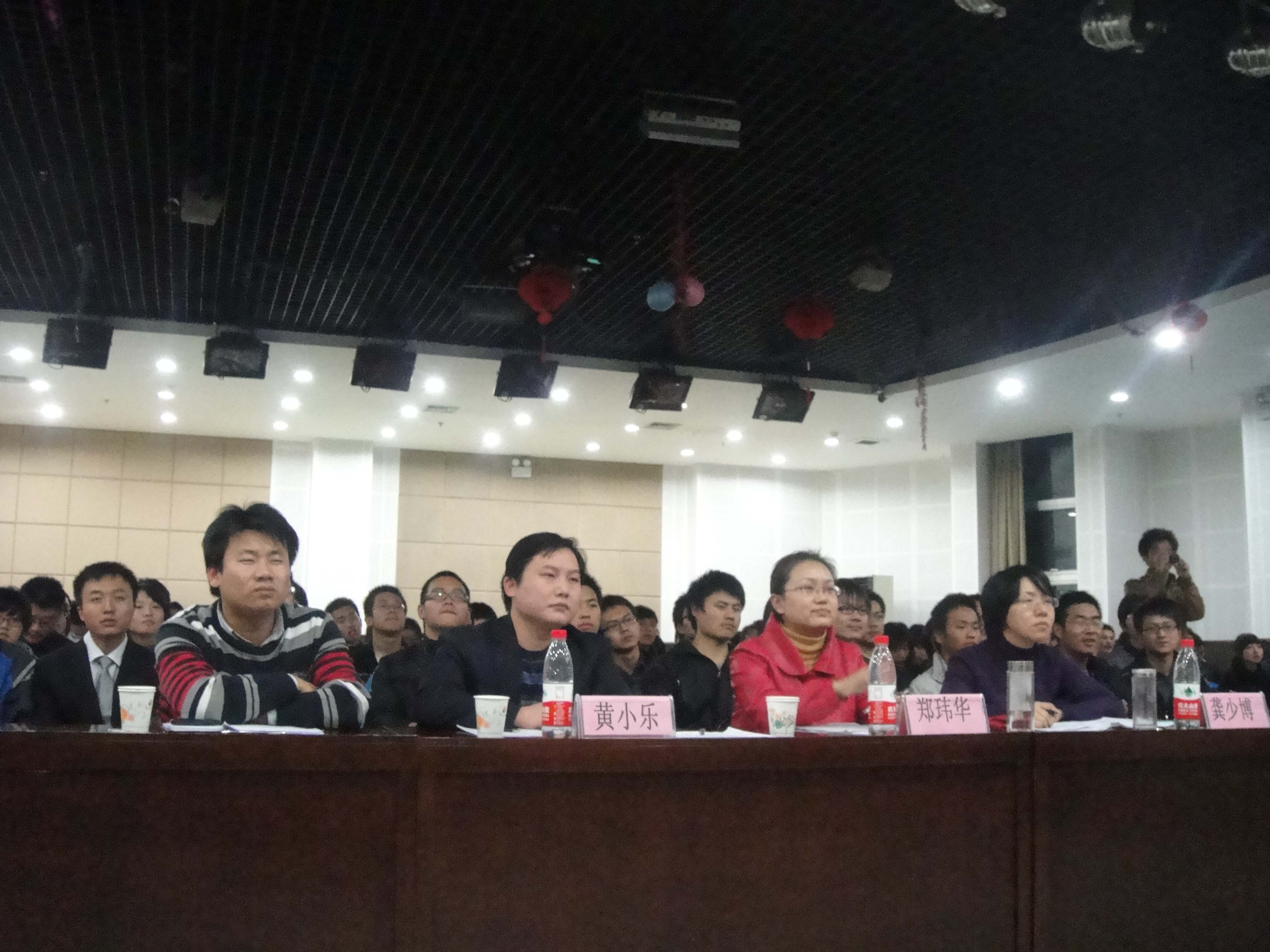 在主持人贾哲浩、傅晓轩精彩的开场词下,比赛在热烈的气氛中开始了。第一环节——“风采展示”,各队利用ppt展示了各队员的风采,体现了他们的创业激情。其后郑玮华老师进行了点评:对于团队的展示应更加丰富更突出优势;龚少波老师表示展示必须从抓住重点表现创业主题;黄小乐老师对于同学们的表现给予了肯定与鼓励。第二环节“必答题”——“旗开得胜”,各队参赛队员竞相抢答问题,现场气氛十分热烈,观众踊跃答题,将比赛推向一个高潮。不知不觉,比赛进入 “激情碰撞”环节,现场几近沸腾,亲友团的加油声一浪高过一浪。到第四环节“如履薄冰”时,现场比分差距逐渐拉大,经管学院柢布之队已190分的高分遥遥领先。各个队伍在最后一个环节——“巅峰对决”,介绍了自己的创业梦想,展示了创业策划,资源学院雄风队的“旺德福自助餐连锁公司”、汽车学院极品飞车队的创业“糖果屋”、材料学院铿锵三人行队的“农家乐垂钓休闲厅”、经管学院柢布之队的“西安新萌饮食配送有限公司”和政治学院fly队的“好孕来”孕妇保健胎教有限公司以及公路学院火焰队的“饰品公司”都让我们看到了选手们优秀的创业思想。最 后郑玮华 老师对于各个团队的创业提出了建议,创意需要有实践且必须与自己的专业联系起来以便使创业的实践性更强。最终经管学院在激烈的竞争中脱颖而出。