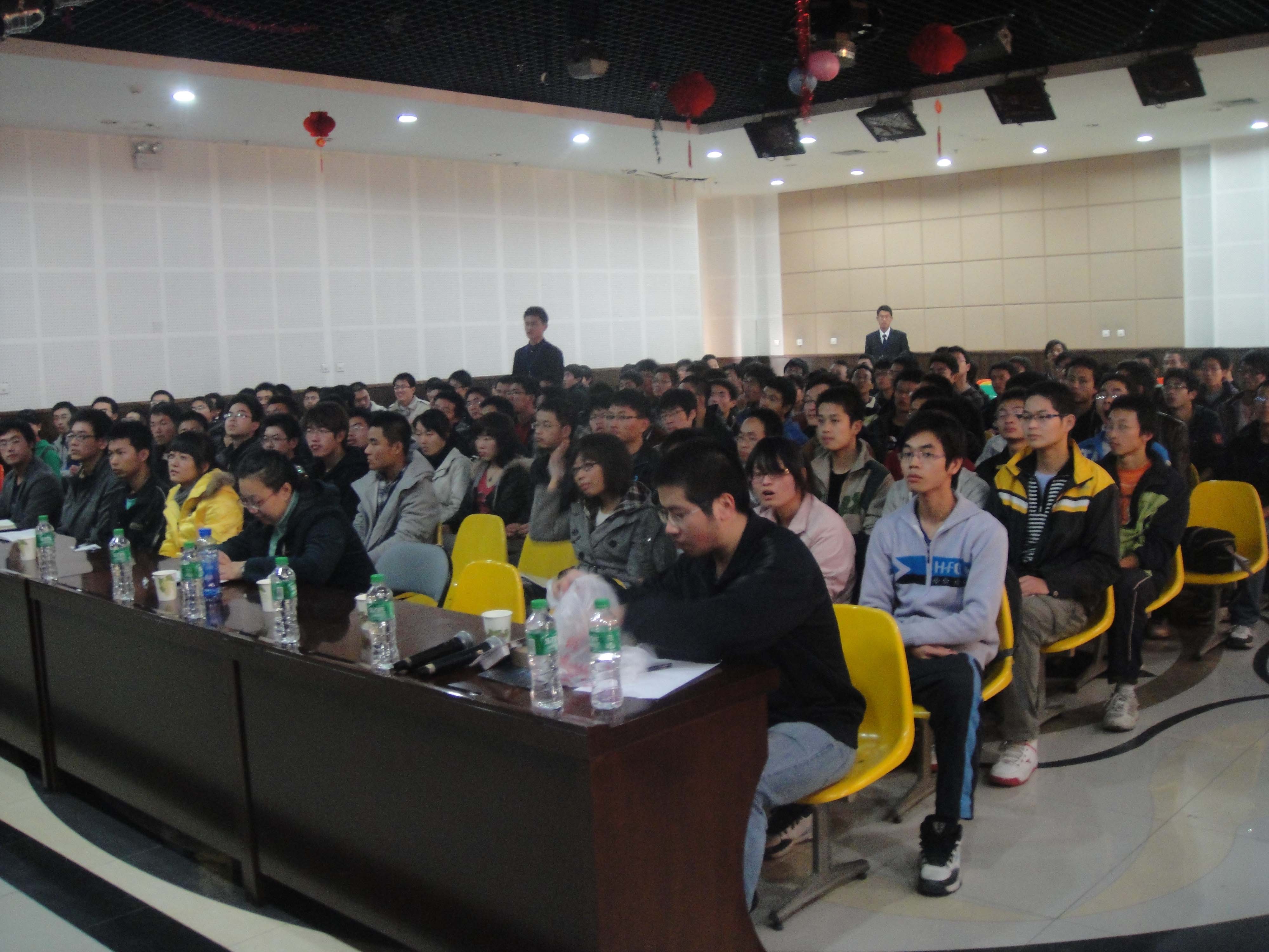 2010年11月20日 下午2点30分,由汽车学院科协和电控学院科协联合举办的长安大学“飞思卡尔”智能车大赛宣讲会在朝晖大学生活动中心三楼多功能厅顺利召开。本次讲座由长安大学硕士生导师、清华大学汽车研究所博士后韩毅副教授主讲,并特邀汽车学院办公室主任兼2010级辅导员杨杨老师、 往届参赛团队成员徐利文、郭徽、冷立、毛锦、林小凤、焦磊和张倩出席本次讲座。
