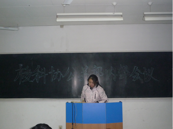 会议上,孟莎莎首先对部门干事在前段时间三场“创业先锋”挑战赛和校科协科技实践委员培训会第一讲上的门迎和礼仪工作进行了总结,肯定了大家的表现并希望大家再接再厉,不断进步。随后,由副部长吕咪咪对接下来将举行的科技作品展暨西安高校科协交流会的礼仪工作进行了详细的说明和具体的安排。最后,部长石涌泉对部门工作情况作了详细的总结和周密的安排:第一、肯定了部门干事在前期大量门迎和礼仪工作中的表现和辛苦,也针对大家工作中的不足提出了意见和建议;第二、详细地讲解了此次科技作品展的相关情况,分享了此次外联工作的心得体会,强调了邀请校外媒体的重要性,对接下来的部门工作进行了充分的动员;第三、耐心地讲解了邀请媒体的相关经验、技巧和注意事项;第四、有针对性地对邀请媒体等相关工作进行了合理的分配和具体的安排。