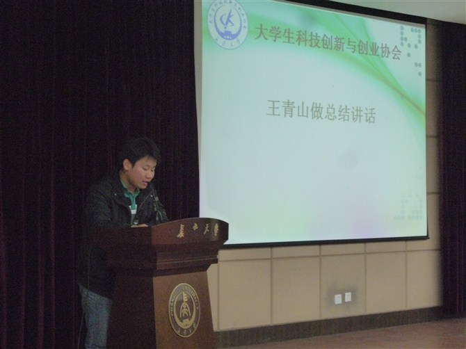 最后,校团委姬国斌老师进行了总结讲话。他在讲话中指出在本学期中同学们以极大的热情投入到科协开展的活动中并积极参与科协的内部建设,校科协正以一个良好的态势走向未来。他重点强调下学期我们应积极围绕“校庆”开展各项活动,组织内部培训,大力推广挑战杯,积极开展创业教育。