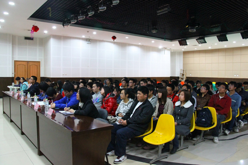 2011年3月11日晚7:00, 团学新闻中心在渭水校区朝晖大学生活动中心三楼多功能厅顺利召开了本学期第一次全体例会。出席本次会议的有团学新闻中心代理秘书长龚少博老师、团学新闻中心主任薛祎明、副主任周晓瑞、郭洋洋、尚磊、高广斌,各部门(副)部长以及全体干事。此次会议旨在对上学期工作的小总结,对本学期工作的细规划。