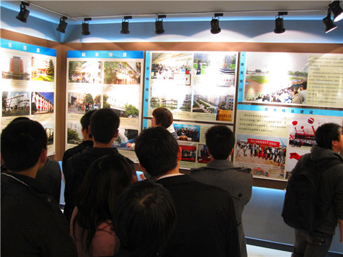 此前,记者从副会长杜旭处了解到,此次参观人员是校史馆正式开放前的首批参观者。校史馆位于大学生活动中心二楼,馆外设有校园新貌、殷殷厚望、校园旧影等专栏向参观者展示着我校的发展历史;进入馆内:首先映入眼帘是校史馆前言“终南挺秀,渭水滋英;泱泱学府,汉韵唐风”。往里走,分别是合并学校前西北建筑工程学院、西安工程学院、西安公路交通大学以及合校后的长安大学的发展历史。在校史馆中,最引人注目的是玻璃柜中一件件陈列品,据工作人员介绍,那些都是我校校友在母校校庆的时候赠送的贺礼,有的来自英国伯明翰大学、日本名古屋大学、上海交通大学等。