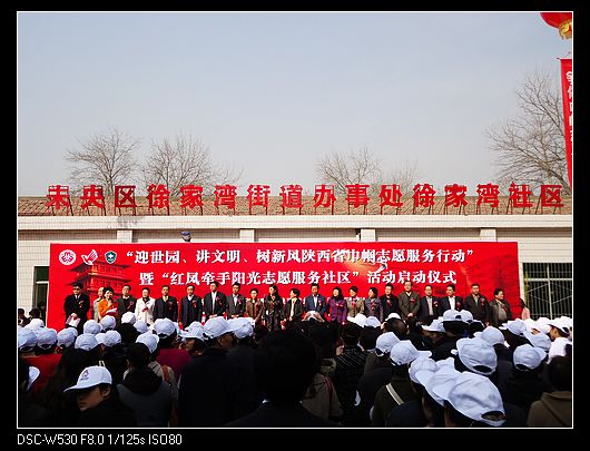 春风送暖锣鼓响,三月桃花别样红。 2011年3月26日 ,“迎世园 讲文明 树新风 陕西巾帼志愿者服务行动”暨“红凤牵手阳光志愿服务社区”活动启动仪式在徐家湾社区举行。这次活动规模宏大,意义非凡,受到了上级领导及各界人士的高度重视,出席此次会议的有陕西省妇联主席、西安市阳光医院院长、未央区及徐家湾社区的领导等,另外,我校及陕西科技大学、西安医学院等高校的志愿者,阳光医院的30位医护志愿者也积极参加到启动仪式中,仪式主持人为陕西电视台主持人红凤志愿者协会形象代言人巾帼志愿者杨芳。