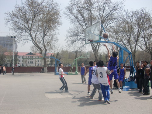 12时30分,男篮揭幕战——建工学院对政治学院的比赛正式打响。值得一提的是,这是政治学院连续第二年参加揭幕战。开场仅10秒,建工学院就在篮下上篮得到2分。政治学院毫不示弱,立刻由11号通过跳投还以颜色。2:2平。此后双方均提高了攻防转换速度,比赛节奏逐步加快。在你来我往的拉锯战中,建工学院凭借强大的内线优势逐步占据上风,频频通过上篮、补篮得分。政治学院在对方内线严密的防守下只能在外线发动攻势,奈何命中率不高,比分很快就被拉大。15:32,建工学院以巨大的领先优势进入半场休息。下半场政治学院加强了内线的防守强度,但在进攻中仍然找不到感觉,相反,建工学院在强有力的篮板保护下始终保持着稳定的命中率,比赛也早早进入垃圾时间。最后5分钟,双方都将主力换下休息。最后,建工学院以56:21大胜政治学院。