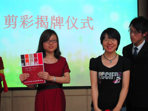 在成书发布会现场,由该书顾问校团委龚少博老师、社联主席杜飞以及本书主编金亚林,一同剪彩发布。随后,《社联印记》编写组副主编、社联办公室主任惠进对本书内容等,做了全面而细致的介绍。