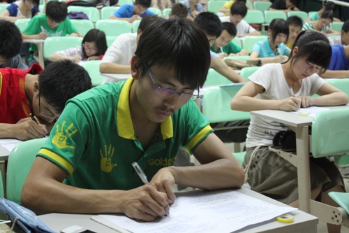 经过激烈的初赛,各个学院皆按比例选出优秀的队伍参加复赛。走进考场,墙上的“长安大学第四届心理知识竞赛”的大红色条幅赫然出现在眼前,考场布置的很简洁,但很有秩序。工作人员积极引导参赛者入场,参赛者有纪律的坐在考场上,静候考试。晚上7点15分,主持人宣布考试正式开始,并分发考卷。