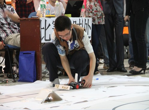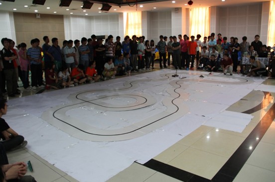 本届大赛由电控学院团委与汽车学院团委联合主办,电控科协和汽车科协承办,比赛共分为电磁组、光电组和摄像头组三种,共有28只队伍参加今天的角逐,盛况空前。赛前,李登峰老师详细介绍了此次比赛规则与,选拔标准,接着上届参赛队员与本次比赛参赛队员进行了队旗的传递,一切准备就绪,第一轮比赛正式开始。28辆车按照逆时针依次沿着赛道进行比赛,完成全程的即为通过比赛,第二轮比赛则需每辆车按照顺时针跑完全程。比赛过程中,很多选手们的车不仅完成比赛,速度也很快,赢得了全场的热烈掌声。比赛结束后,韩毅老师和李登峰老师分别对比赛做了点评。最后领导们为各获奖队伍进行颁奖,并合影留念。此次比赛在欢快的庆祝氛围中圆满结束。