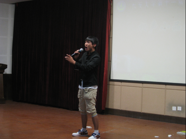 2011年5月11日晚,长安大学第十一届大学生艺术节相声小品大赛初赛在朝晖大学生活动中心三楼多功能厅拉开了帷幕。工程机械学院08级辅导员赵良臻老师,09级辅导员杨鹏老师,10级辅导员王博老师,校大艺团团长张馨同学,第十届渭水之星冠军、体育系文艺部副部长宋永志同学,环工学院文艺部部长陈家驹同学,材料学院文艺部部长史晓媛同学,建工学院文艺部部长赵洁同学,外国语学院文艺部部长顾婷婷同学,资源学院文艺部部长吕蔡伟同学,工程机械学院大艺团团长叶新勇同学出席了此次大赛。