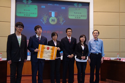 2011年5月16日晚上7点,图书馆礼堂内热闹非凡,由长安大学大学共青团委主办、哲思演讲辩论协会承办的“献礼校庆,论辩长安” 第六届校级辩论赛在此举行。比赛由进入决赛的经管学院代表队对阵电控学院代表队,出席本次辩论赛的嘉宾评委有长安大学学工部副部长王冰老师,校团委副书记张侠老师,文传学院硕士生导师戴生歧老师,最终经管学院以更加完美的表现赢得了冠军。