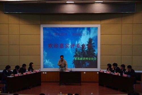 比赛首先由主持人介绍了到场嘉宾、正反方辩手以及本次的辩题,正方:在我们人生旅途中与谁同行更重要。反方:在我们人生旅途中去向何方更重要。然后,双方一辩用具有高度概括性的陈述为本场辩论开篇立论。然后双方二辩彼此反驳。双方二辩灵活的思维和缜密的逻辑推理,不时的赢得场下阵阵掌声。而到了比赛的第四环节自由辩论阶段,可以说是本场辩论的高潮。自由辩论你争我夺,不相示弱,妙语连珠。值得一提的是正方四辩李晨光同学的流利辩词,从容应对挑战的态度,诙谐幽默的语言更是赢得在场同学的阵阵掌声。最后比赛进入总结陈词环节,双方四辩各自针对对手逻辑上的漏洞逐一回击,为赢得比赛做最后努力。