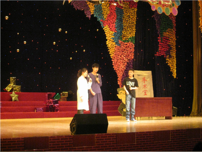 晚七时,比赛正式开始,由一号参赛作品《我也能演》拉开了比赛的帷幕。此次比赛充分显示了我校学生的艺术才华:惟妙惟肖的表演,引人入胜的情节,诙谐幽默的台词,让人在捧腹之余又心存感动。《小沈阳与灰太狼》从人与动物之间的关系入手,借助垂死的狼的话语鞭笞了人类的愚蠢;《女生宿舍楼下》讲述了校园男女之间纠结的爱情故事,欢笑之余又发人深省;《同舍的你——再聚长大》以新的身份回忆曾经的校园生活,让我们看到了宿舍生活中的点滴回忆。最值得一提的是,此次决赛还涌现出了以小品《医院》为代表的一系列优秀原创作品,该小品以产妇分娩为背景,通过对产房外丈夫的焦急等待进行细致地刻画,使丈夫的形象活灵活现;又通过儿子与母亲在母亲节的对话,使我们看到了浓浓的母子之情,演员在丈夫与儿子只之间成功转换,将故事完美演绎,使人物形象十分丰满。