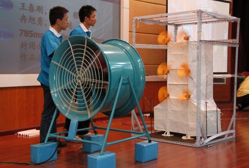 本次竞赛活动分为方案设计、模型制作、加载三个阶段进行。并于5月9日、11日、12日三天对参赛模型进行了加载试验。整个过程同学们积极认真,现场加载图文并茂,答辩条理清晰,扣人心弦,博得在场人员的阵阵掌声。经过3天紧张而又激烈的角逐,最后“秦峰羽翼”作品以其合理的结构设计、优秀的发电功率获得本次邀请赛一等奖,“风中骄子”、“固城尚武”、“天空之城”作品获二等奖,“傲风”、“风舞双碟”、“乐风”、“造梦空间”、“风之轨迹”、“夕霞居室”作品获三等奖,“风行者”、“绿野晓筑”、“原动力”、“风韵长安”、“亮建”、获优胜奖,“风电转换站”、“固城尚武”、“蜂巢”作品分获最佳创意奖、最大功率奖和最佳造型奖。