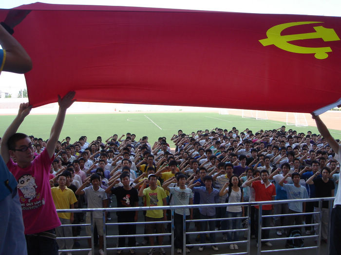 宣誓仪式上,全体参会人员起立面向党旗庄严宣誓。弘厚的誓词彰显着莘莘学子加入中国共产党的决心与意志,更体现了新时代、新青年对于党的认识与向往。