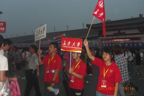 整个迎新过程,首先要保证任何时间段到的新生都能迅速地发现长安大学的接站志愿者,然后引导他们安全、轻松地到达校车乘车点。