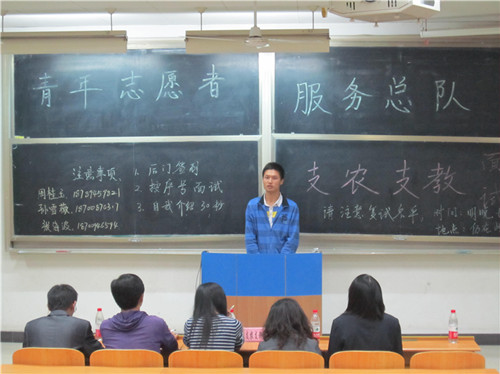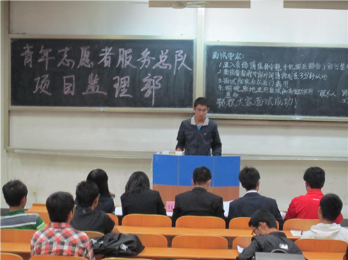 为了响应校团委的号召,完成校团委所安排的任务,积极履行青年志愿者服务总队作为优秀校级组织的职责,总队于2011年9月26日、27日晚7点在修远一、二区分别进行了2011—2012学年干事纳新的第一、二轮面试,面试按照十一个部门进行,共计有700多位大一同学参加了初试,预计将有200名左右的同学最终进入总队的干事试用期。