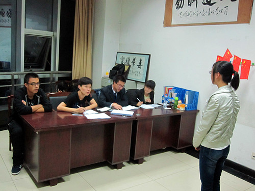 晚上7点整,面试正式开始,由工作人员引导面试者到指定地点进行面试。面试者个个信心满满,胸有成竹地站在本部门面试官面前,有备、流利地回答面试官的各种问题。各个部门也都根据本部门所需人才的特点进行提问,从多方面了解参加面试的人,以便从中选出自己所需要的人才。各个部门的面试氛围都很轻松,给参加面试的同学一种自然、轻松的感受,让他们更好地展现自己。