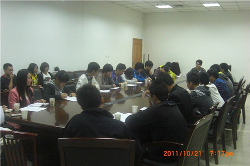 2011年10月21日晚7:00,我校青年志愿者服务总队在朝晖大学生活动中心一楼成功与各院系大志团(即志愿者分队)举行了见面会。参加此次会议的有青年志愿者服务总队主席张强,各副主席,各院系大志团负责人及总队各部门部长。会议由总队主席张强主持,主要目的是探讨各学院之间如何合作,才能将长安大学的志愿者工作做好。