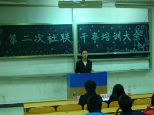 10月23日 晚7:00至9:00,长安大学学生社团联合会所有部门分别在修远教学楼1101、1102、1104教室进行了第二次社联干事培训大会。与会的有社联全体成员,应邀出席的嘉宾有部分往届社联学生干部。在大会上各主席和部长对大一干事进行了经验交流、职能介绍、工作培训等工作。