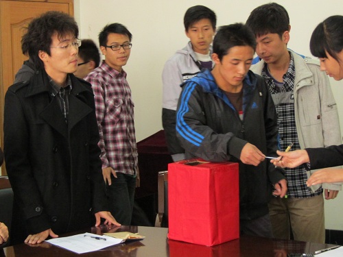 2011年10月25日12点30分,“芙蓉学子•榜样力量”优秀大学生评选活动小组评审学生评委抽选会议于朝晖大学生活动中心会议室召开,前来参加此次会议的有校团委老师朱先前,校学生会主席团成员,各学院学生会主席以及学生代表。