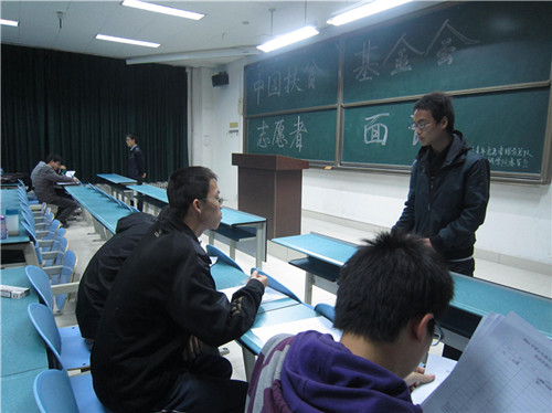 2011年10月28日晚7:00,由共青团工程机械学院委员会和青年志愿者服务总队合作承办的“爱心包裹”项目劝募志愿者面试活动在明远C区进行。参加面试的同学共有400余名。