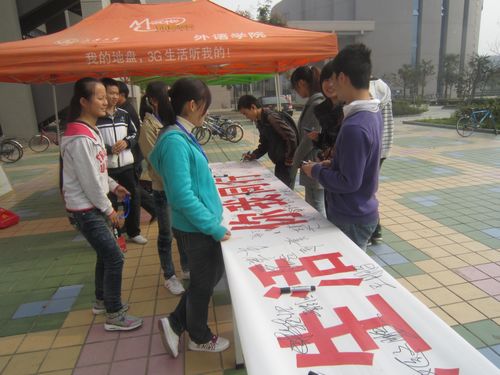 上午十点左右,总队负责人员早已布置好场地,并对客人的到来表示了热烈的欢迎。之后,宣传正式开始。此时已有不少同学前来参观展板,西农讲解员为同学们进行了流利的讲解,精彩的评说,并融入了自己的亲身经历。展板包括了“WWF秦岭青年使者活动”的主要内容,如爱心支教、实地调研、绿色书架等。同学们都听得津津有味,并来到条幅前签上自己的名字,以表示对此次活动的支持。