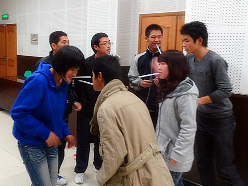此外,充满趣味的游戏也是本次活动的一大亮点。游戏以小组比赛的形式进行,大家都积极上台参加。“K歌之王”调动了全场轻松愉快的气氛,全场欢呼声不断;“吸管大作战”更是别有新意,博得阵阵喝彩;“齐心合力”在紧张的比赛气氛中增强了队员们的合作能力,加强了彼此间的默契。其他游戏也都以独特的方式让大家在参与过程中享受了快乐。
