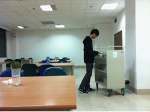 11月14日,图书馆对八层占座物品进行了清理,时间选为晚八点,以避免对考研学生使用自习室产生不必要的影响。工作人员严格按照一人一座制度,针对有占座物品却无人在座或一人占用多人座位的情况,对物品进行清理或整理,清理出的物品,放至八楼开水间,由学生自行取回。
