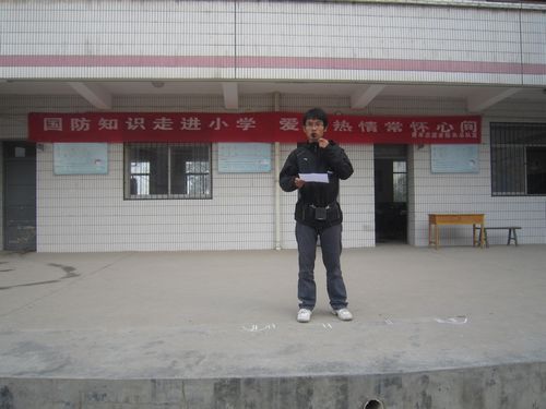 2011年11月14日上午,我校青年志愿者服务总队在西安市未央区三官庙小学举行了“国防知识进小学,爱国热情在心间”国防文化周活动启动仪式。三官庙小学的相关领导、老师出席了此次启动仪式,我校青年志愿者服务总队的志愿者与该校全体学生参与了启动仪式。
