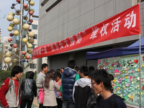 为征集同学们对学校各方面的意见,以建设优美和谐校园,11月18日中午,由我院举办的“我的长大我做主”服务维权活动在树蕙园广场隆重举行。