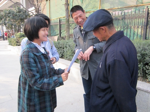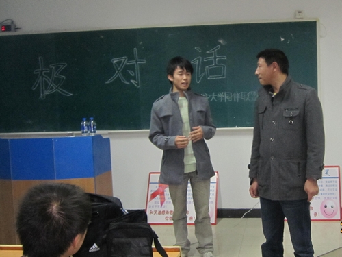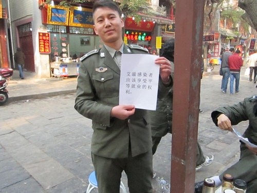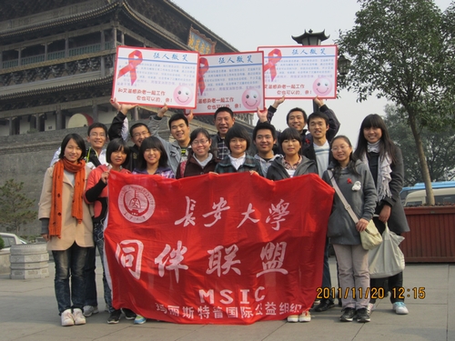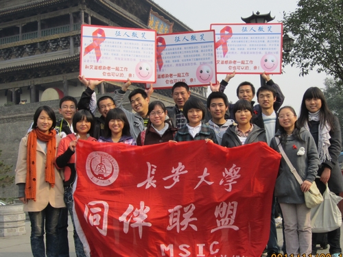 在“12.1”世界艾滋病日到来之际,为呼吁关注艾滋病患者,给及平等就业,校心协同伴联盟部携志愿者于11月20日8:30与艾滋病毒携带者小马前往钟楼,举办“一人一微笑”——用笑脸支持艾滋感染者平等就业反歧视活动。