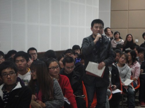 随后,郑老师给我们展示了两个获得金奖项目的PPT,通过实例让大家深入了解参赛要求。她强调参赛队伍应将PPT做的精致并能突出重点,并详细阐述了如何在短时间内向评委完善地介绍自己的项目等一系列同学们最关注的问题。同时,郑老师还就参赛队伍如何闯出预赛、冲击大奖提出了几点意见:服务类项目要对同类项目进行充分了解,并且自己的项目门槛要高,技术类项目技术核心要突出。接着的解惑阶段,郑老师一一解答了许多参赛团队的疑惑,希望通过对这些疑问的解答使各参赛团队能更好的找到自己团队发展的方向,不断完善作品从而闯出校赛、冲击省赛、问鼎国赛。