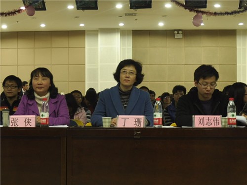 首先,各队参赛队伍依次上台展现风采,他们响亮的口号,短剧、魔术等独具创意的自我展示方式赢得了台下的阵阵掌声。随后,在第一环节的必答题中,题目类型为判断题和选择题。内容涉及有关礼仪的各类知识,范围广、难度低,选手们在此环节对自己的竞赛状态进行了充分的预热;第二环节是紧张的抢答题阶段,抢答题包括了5道有关礼仪规范的选择题,题目难度有所提升,选手积极的抢答、谨慎的作答,各队表现不分伯仲。在随后的作品展示环节中,现场气氛更是达到了高潮。各队参赛选手依次上台展示自己队伍的作品,以调查问卷、自编杂志、视频、电子杂志等方式展出的礼仪知识作品内容详实、精彩,其中,来自政治学院的咖啡无伴侣队伍制作的有关职业面试和产品推销的视频内容细致出彩而引人注目,赢得了观众热烈的掌声。评委们同样精彩的点评也为这一环节增加了亮点。在评委老师的点评中,每一位评委都对选手的作品提出了宝贵的意见,在赞扬选手作品优点的同时,也对作品的不足提出了改进建议。同时,评委老师对礼仪知识、礼仪重要性的讲解也让观众和选手们受益匪浅,在一阵阵的掌声中,现场与评委间的互动也在讲述与倾听中加深。在评委对各队作品打分的过程中,现场进行了有奖互动问答,问题涉及的礼仪知识与日常生活息息相关,同学们的回答认真积极,现场气氛尤为高涨。接下来的就是本次比赛的压轴环节风险题。在这一环节中,参赛队伍根据自己队伍实力及分数情况选择不同分值的题目来回答,答对加相应分数,答错则扣除。 这一环节也是将比分差距拉开并决定最终成绩的环节,多数队伍为了最后一搏选择了分值较高的题目,而来自汽车学院的礼仪青年队凭借实力拿下了高难度的情景礼仪分析题,赢得了观众的热烈掌声。至此,大赛答题部分全部结束。最后,学生就业与发展服务中心副主任丁珊老师上台讲话,对大赛进行了总结。在丁珊老师的总结中,她对当下社会礼仪缺失的现象进行了深入的分析,并由此说明了遵守礼仪规范、学习礼仪知识对于当代大学生以及当下社会的重要性,充分肯定了此次大赛的意义,她深入浅出的讲话发人深省。同时,她也赞扬了此次活动中各参赛队伍内容丰富、富有创意的作品,并对此次大赛的举办表示非常满意。
