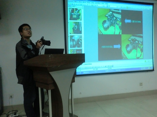 首先,俞雪为大家介绍的新闻的概念,之后分别详细地讲解了消息的特征、写作、组成和主体结构方式以及各种具体消息的写作,如会议新闻稿、讲座稿、比赛稿等。俞雪同学凭借着丰富的经验向大家传授了关于新闻稿写作的要点,让大家受益匪浅。然后,刘澈为大家讲解了一些摄影基础知识,如相机的相关构造及按键分部、相机的基本操作、相机的维护及修养、如何拍摄和一些实用技巧,而且向大家分享了他的部分作品。他在培训中进行了单反相机的使用演示,充满了生动感,给大家留下了深刻印象。