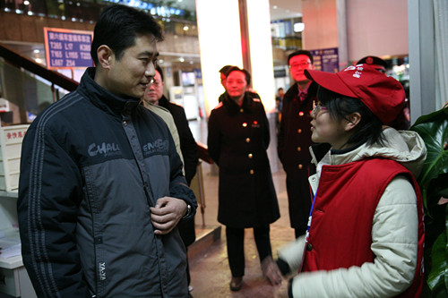2月2日下午,全国铁道团委书记岳震在西安铁路局团委副书记牛帅等人的陪同下,深入西安车站看望慰问了我校在岗的80名铁路春运青年志愿者并指导志愿工作。