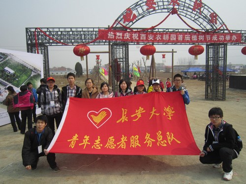 为了迎接3月12日植树节的到来,西安市残疾人联合会、共青团西安市委员会、陕西省慈善志愿者分会共同主办了以“许美好愿望,献绿色爱心”为主题的首届西安农耕园植树活动暨残障人士农疗基地签约仪式。参加本次志愿活动的有陕西师范大学、西安科技大学、西北大学等19所高校的志愿者,以及陕西省公益联盟等众多公益组织。我校青年志愿者服务总队一行十人代表长安大学参加了此次活动。