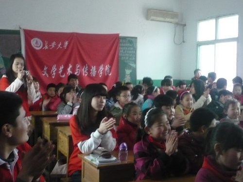 2012年3月15日中午13:00,呼吸着雨后清新的空气,校门口集聚着一批身穿红色短袖的同学。经了解,他们是参加由文传学院志愿队为响应长安大学首届志愿者文化节而组织开展的“携手可爱天使,传承传统节日”支教活动的志愿者。