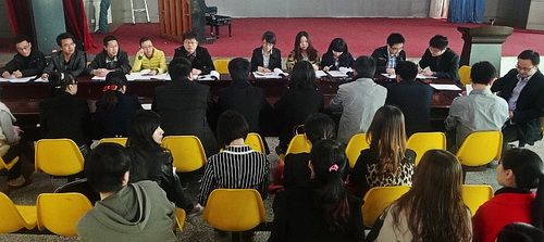 2012年3月18日下午,2011——2012学年长安大学研究生会工作例会在校本部东院雁博园四楼多功能厅顺利召开。校团委刘艳艳老师、校研究生会主席朱先前,校团委书记助理张可、张晓明、校研究生会主席团成员以及各学院研究生会主要负责人出席了大会。长安大学研究生会全体部长参加了会议。会议由长安大学研究生会主席朱先前主持。