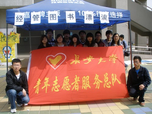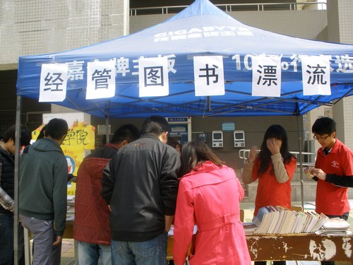 3月17日早10:30,长安大学青年志愿者服务总队与经济管理学院共同举办的为期两个月的“让书飞一会”爱心图书漂流活动在树蕙园、滋兰苑广场正式启动。据了解,“让书飞一会”爱心图书漂流活动是长安大学2012年“传承雷锋精神,参与志愿服务”大学生学雷锋系列活动的院系重点活动之一,受到长安大学学生工作部、共青团长安大学委员会学生工作部及经济管理学院的重点支持与帮助。在活动期间,经管学院大志团主要负责组织本次活动,青年志愿者服务总队负责提供“爱心书屋”中收藏的部分图书进行展览、供同学们借阅。