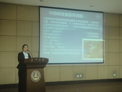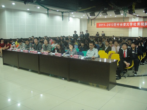 2012年4月16日19:00,长安大学大学生科技创新与创业协会(以下简称“校科协”) 在朝晖大学生活动中心三楼多功能厅开展了2011—2012学年长安大学优秀大学生科技创新与创业协会评选活动。校团委郑玮华老师、李瑾老师、校科协主席团全体成员出席并担任评委,各院科协主要负责人、部分学生代表应邀参加此次活动。校科协副秘书长张春蕾主持本次评选活动。本次评选分为院系互评和现场答辩两个部分,其中院系互评部分于4月15日完成。在院系互评阶段,来自14个参评学院的主席及校科协主席团本着公正、公正、严谨的态度对参审资料进行评分。
