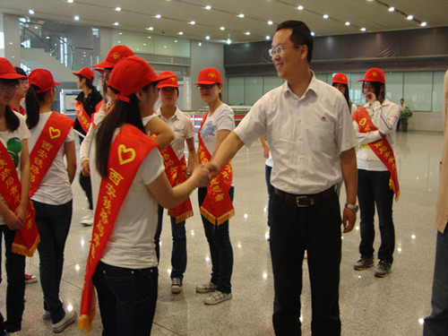 领导与青年志愿者亲切交谈