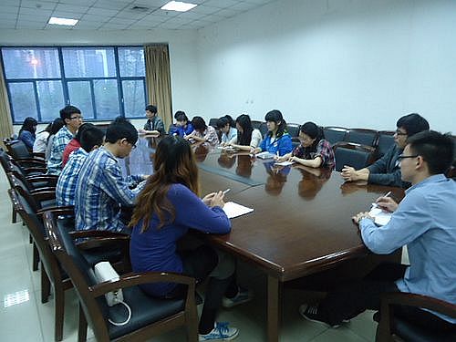 首先,夏子曦主席强调了校团委书记张骞文老师在5月6日主持召开的“学习胡锦涛总书记在纪念建团90周年大会上的重要讲话”座谈会上所阐述的精神,要求在落实总书记的讲话与青年工作的具体相结合时,广大团员青年要明确肩负的历史责任,明确工作学习的目标;要求将人生理想与社会责任相结合,不断创新,锐意进取,在思考中提升境界、在实践中增长本领、在坚持中实现理想;要求加强理性思考,加强调查研究,深入调研,扎实做好社联现状分析、未来发展报告。为社联可持续健康发展奠定基础。接着,部长们就此进行了深入探讨,并结合自身的工作、学习实际畅谈了学习心得和体会。随后,副主席刘翱翔进行了发言,要求学生社团联合会在贯彻落实总书记的重要讲话精神,主动将其融入到日常工作中。最后,夏子曦主席分享了自己对于张书记在6日座谈会上提到的关于“理想与责任”以及“做人与做事” 关系的思考。与会人员认真听取了会议内容并做了相关笔记。