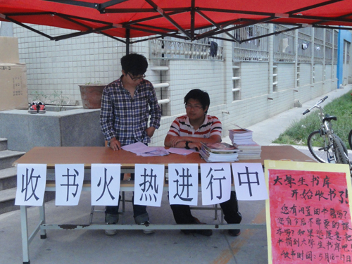 2012年5月18日至19日,由长安大学图书管理委员会和电控学院牵手同行志愿者服务队携手承办的大学生书库捐书活动在各宿舍楼下如期举行。