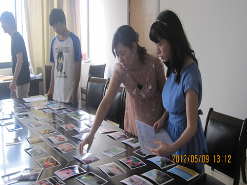 工作人员就到达会议室将进入决赛的作品摊在会议室桌椅上以供评委老师品鉴,文学艺术与传播学院团委副书记段雨欣向评委老师们简要介绍了此次比赛的主旨及过程。她指出比赛是由文学艺术与传播学院发起并承办的校级精品活动,参赛作品涉及书法、绘画、摄影作品共计312幅,初赛过后,按照“留下青春印记”的主旨,60幅摄影作品、18幅书法作品、6幅绘画作品顺利进入到此次决赛。随后,评委老师们开始了对各幅作品的品评。“这张是逆光拍摄,效果挺不错的。”“这张跟青春的主旨挺接近的。”“这幅字写的苍劲有力。”评委老师们交换着意见,耐心细致的对作品进行着专业的点评。