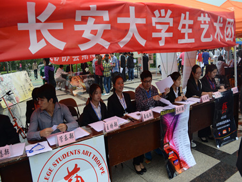 2012年9月16日,一年一度的校级组织社团纳新的日子,一大早迎着晨曦,长安大学大学生艺术团纳新活动在树蕙园广场徐徐拉开帷幕。树蕙园广场上,横幅飘扬,海报招展。大艺团的红色帐篷前排起了长长的报名队伍。