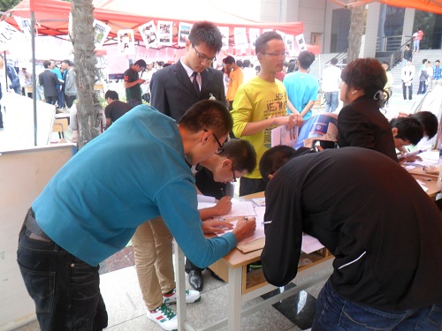 早上6:50,校科协全体干部在纳新点签到集合,开始布置纳新场地。充分利用各种宣传物品对纳新点进行布置,并迅速就位。8:00,准备工作全部完成,全体干部开始咨询工作,为有意加入校科协的大一新生答疑解惑。新生纷纷前来咨询,对加入校科协表现出了极大的兴趣;咨询点的校科协干部们认真回答新生的问题,力争使其全面而深入地了解校科协的相关工作与职能,前来询问的新生络绎不绝,现场十分热闹。