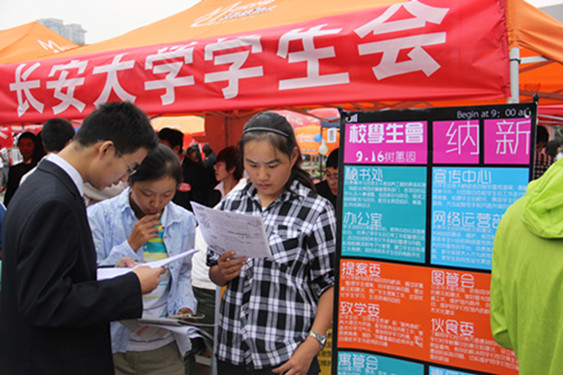 2012年9月16日,长安大学学生会在东区树惠园广场进行了2012年干事纳新宣传活动。长安大学学生会主席团,长安大学学生会部长级所有成员参加了本次纳新宣传活动,主席李致中是本次活动的主要负责人。